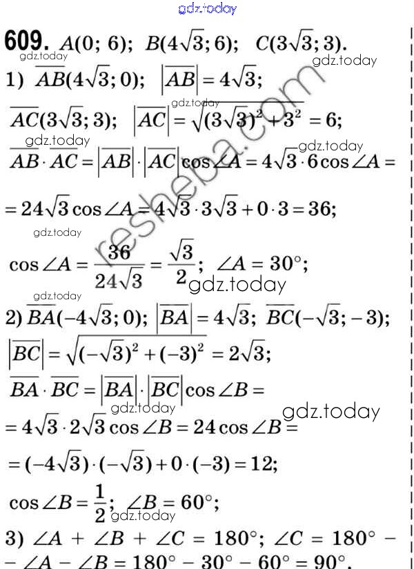 Ответы к Решение. Задачи 609 Учебнику по Геометрии для 9 класса Мерзляк, Полонский Вентана-граф, Просвещение 2016, 2023