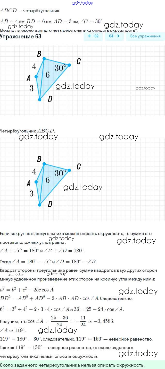 На страницах сайта gdz.today вы найдете учебный и вспомогательный материал, направленный на улучшения знаний школьной программы. ГДЗ - онлайн мир знаний Решение. Задачи 63 Учебнику по Геометрии для 9 класса Мерзляк, Полонский Вентана-граф, Просвещение 2016, 2023