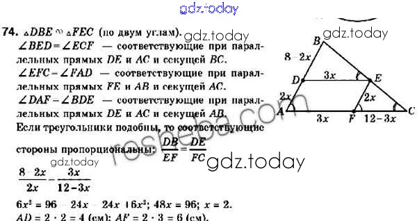 Ответы к Решение. Задачи 74 Учебнику по Геометрии для 9 класса Мерзляк, Полонский Вентана-граф, Просвещение 2016, 2023