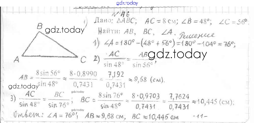 Ответы к Вариант 1. Решение к упражнениям 46 Дидактическим материалам по Геометрии для 9 класса Мерзляк, Полонский Вентана-граф Алгоритм успеха 2017
