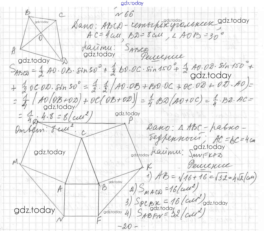 Ответы к Вариант 1. Решение к упражнениям 66 Дидактическим материалам по Геометрии для 9 класса Мерзляк, Полонский Вентана-граф Алгоритм успеха 2017