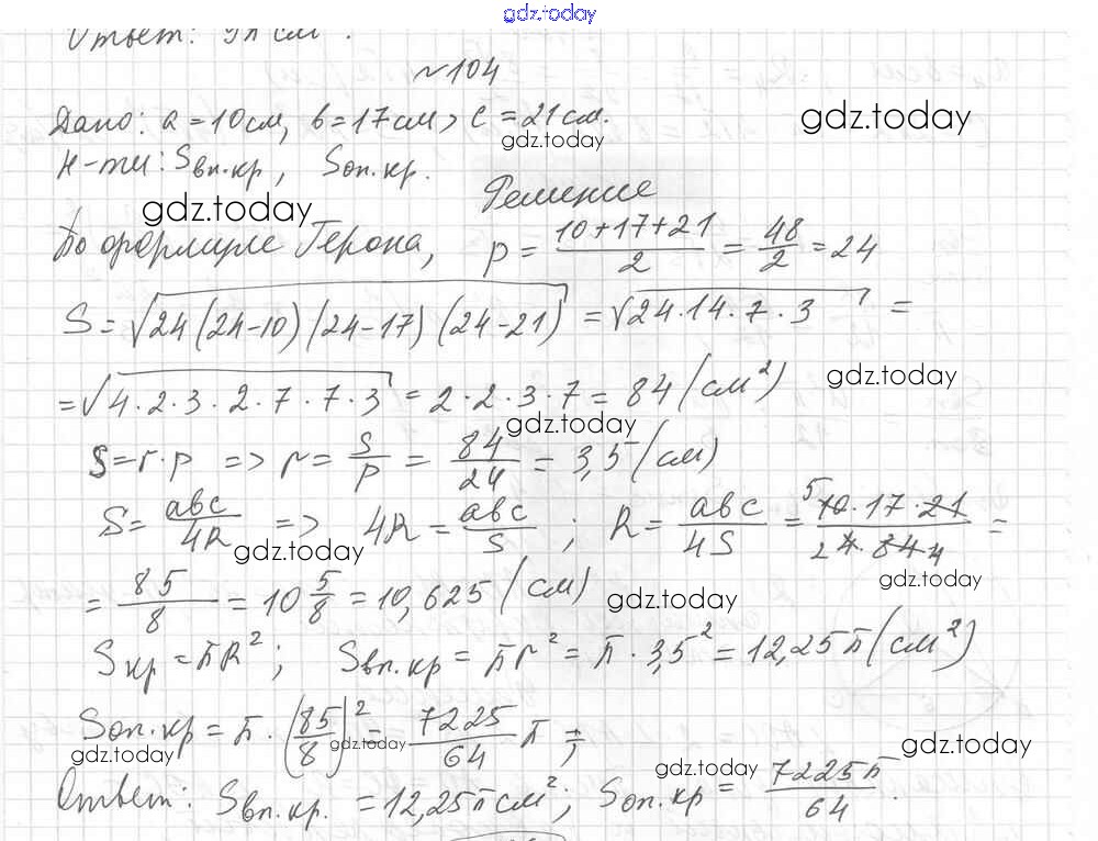 Ответы к Вариант 2. Решение к упражнениям 104 Дидактическим материалам по Геометрии для 9 класса Мерзляк, Полонский Вентана-граф Алгоритм успеха 2017