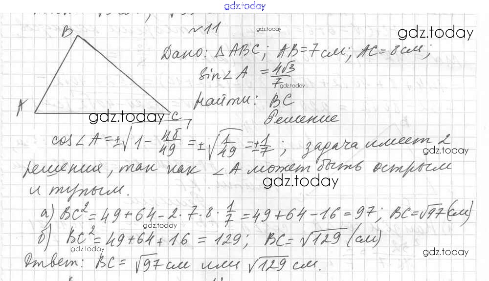 Ответы к Вариант 2. Решение к упражнениям 11 Дидактическим материалам по Геометрии для 9 класса Мерзляк, Полонский Вентана-граф Алгоритм успеха 2017