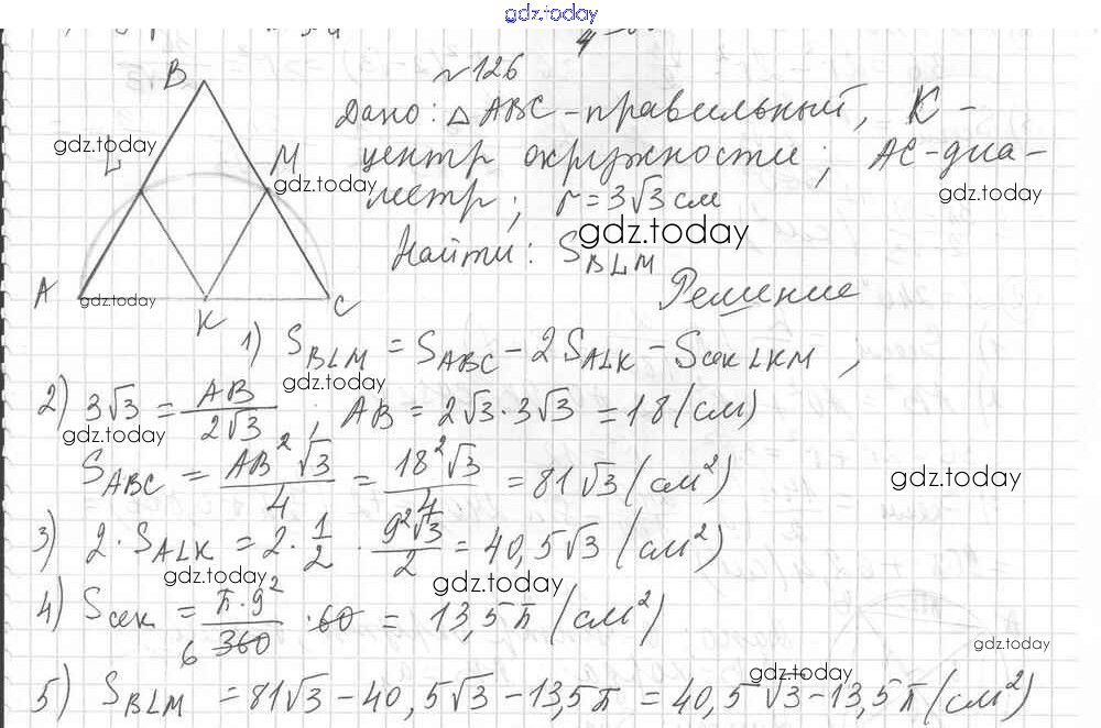 Ответы к Вариант 2. Решение к упражнениям 126 Дидактическим материалам по Геометрии для 9 класса Мерзляк, Полонский Вентана-граф Алгоритм успеха 2017