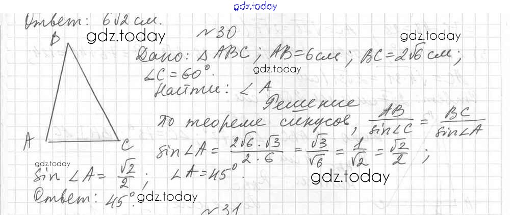 Ответы к Вариант 2. Решение к упражнениям 30 Дидактическим материалам по Геометрии для 9 класса Мерзляк, Полонский Вентана-граф Алгоритм успеха 2017