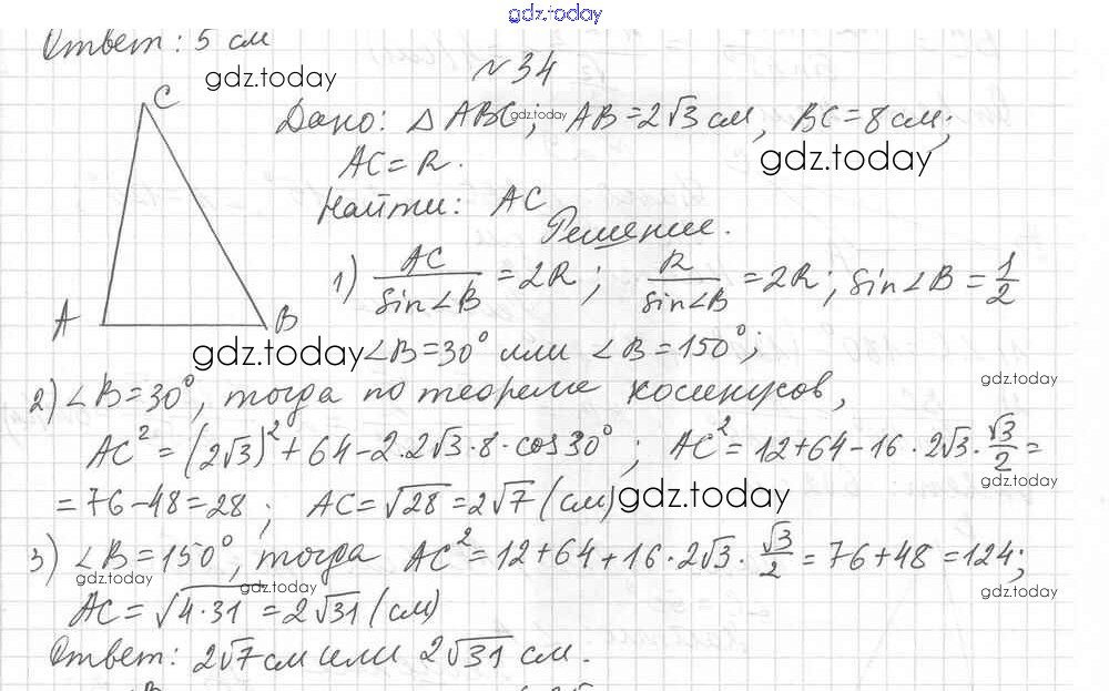 Ответы к Вариант 2. Решение к упражнениям 34 Дидактическим материалам по Геометрии для 9 класса Мерзляк, Полонский Вентана-граф Алгоритм успеха 2017