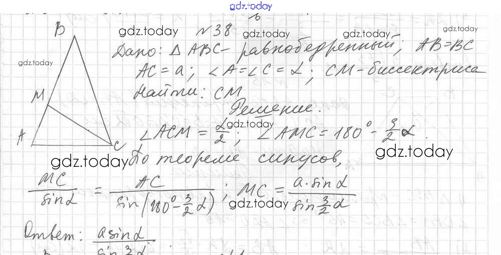 Ответы к Вариант 2. Решение к упражнениям 38 Дидактическим материалам по Геометрии для 9 класса Мерзляк, Полонский Вентана-граф Алгоритм успеха 2017