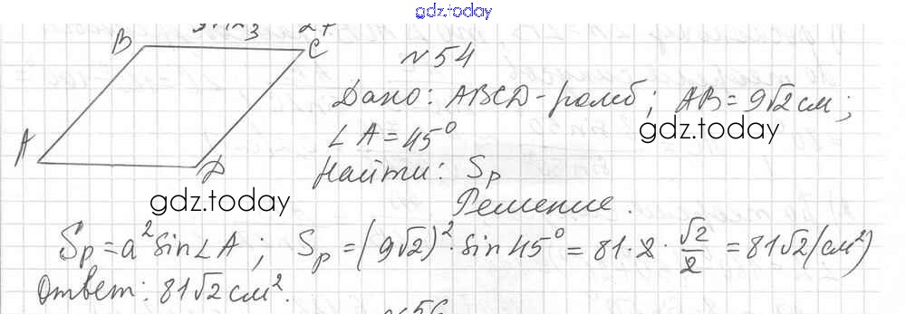 Ответы к Вариант 2. Решение к упражнениям 54 Дидактическим материалам по Геометрии для 9 класса Мерзляк, Полонский Вентана-граф Алгоритм успеха 2017
