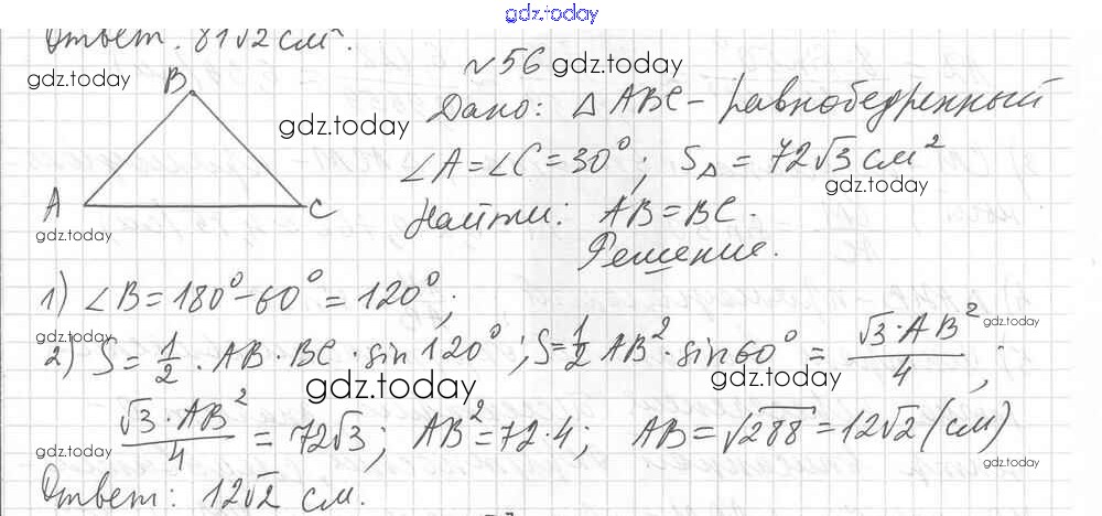 Ответы к Вариант 2. Решение к упражнениям 56 Дидактическим материалам по Геометрии для 9 класса Мерзляк, Полонский Вентана-граф Алгоритм успеха 2017