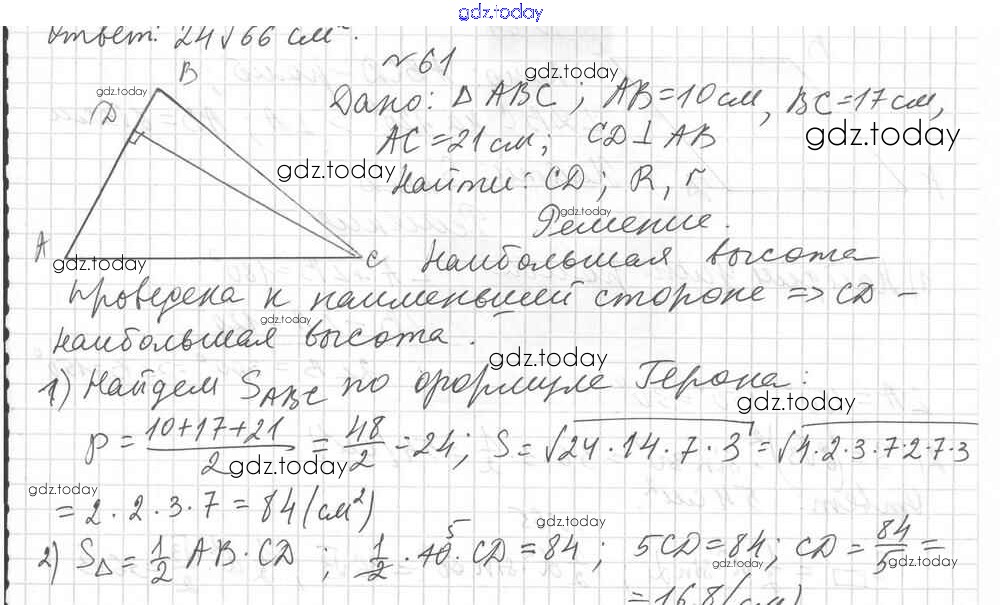 Ответы к Вариант 2. Решение к упражнениям 61 Дидактическим материалам по Геометрии для 9 класса Мерзляк, Полонский Вентана-граф Алгоритм успеха 2017
