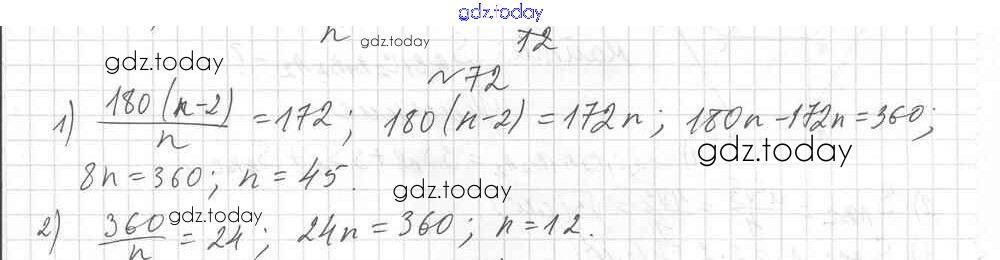 Ответы к Вариант 2. Решение к упражнениям 72 Дидактическим материалам по Геометрии для 9 класса Мерзляк, Полонский Вентана-граф Алгоритм успеха 2017