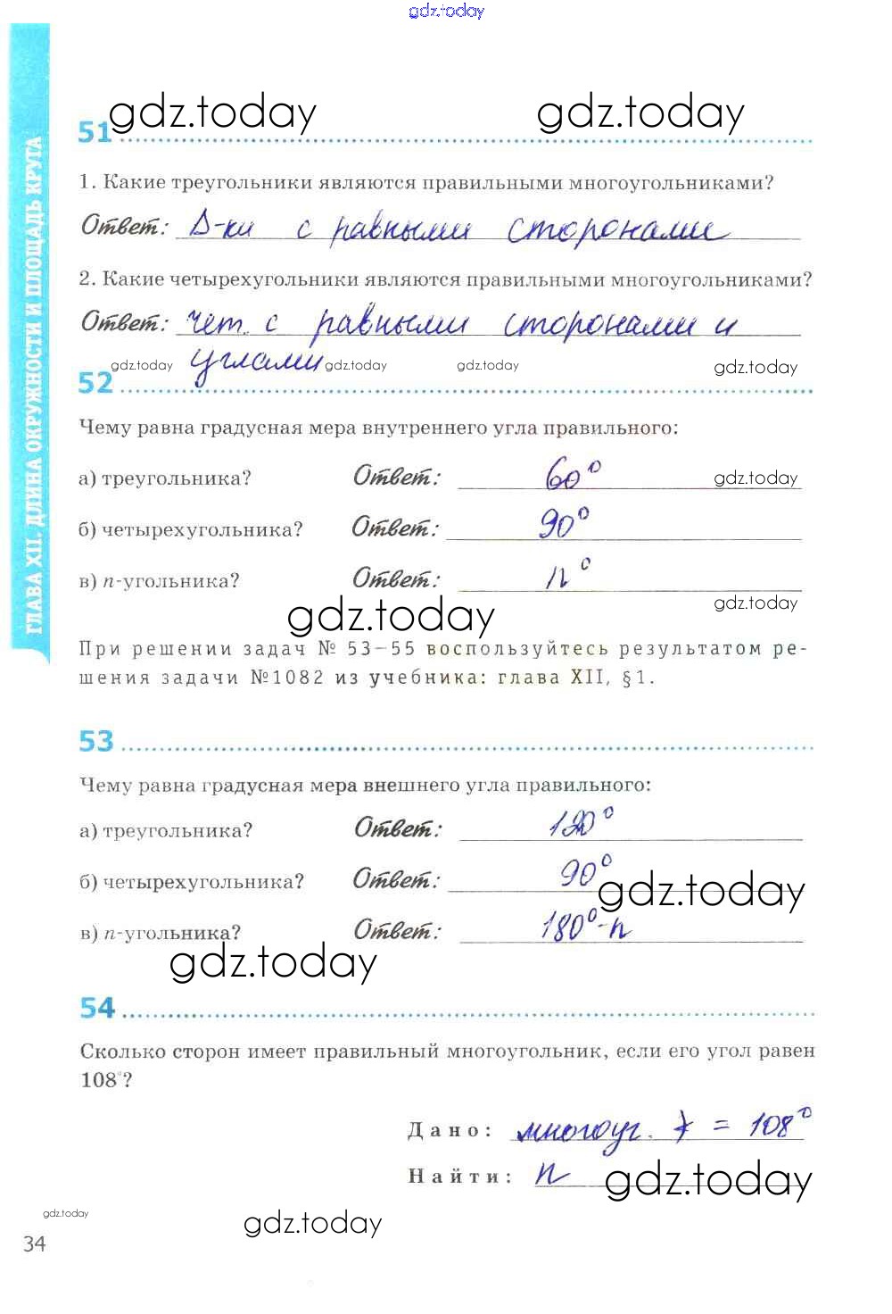 Ответы к Страницы (решение) 34 Рабочей тетради по Геометрии для 9 класса Мищенко Экзамен УМК 2016