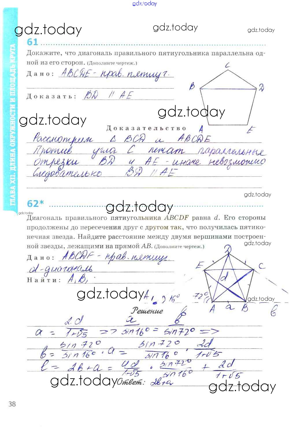 На страницах сайта gdz.today вы найдете учебный и вспомогательный материал, направленный на улучшения знаний школьной программы. ГДЗ - онлайн мир знаний Страницы (решение) 38 Рабочей тетради по Геометрии для 9 класса Мищенко Экзамен УМК 2016