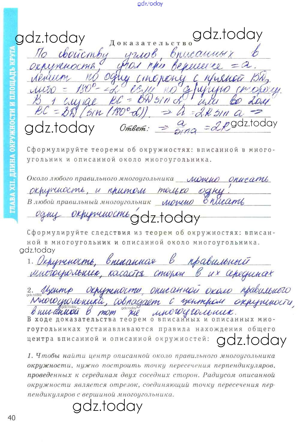 Ответы к Страницы (решение) 40 Рабочей тетради по Геометрии для 9 класса Мищенко Экзамен УМК 2016