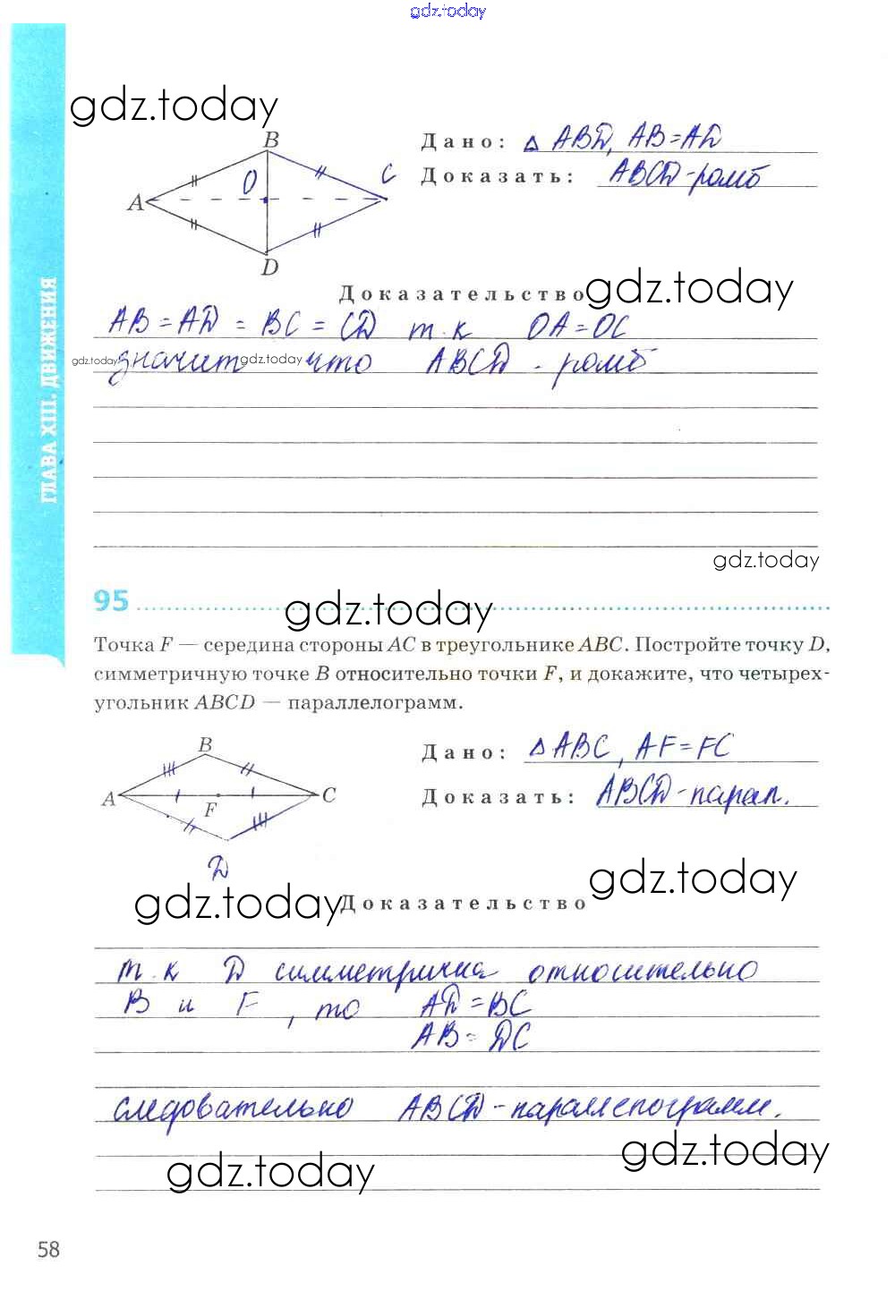 Ответы к Страницы (решение) 58 Рабочей тетради по Геометрии для 9 класса Мищенко Экзамен УМК 2016