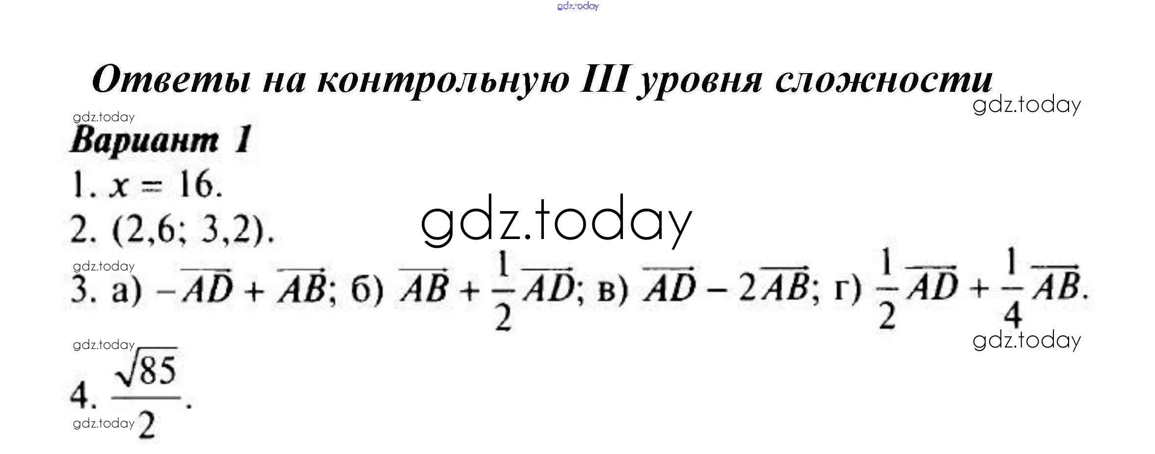 Ответы к Уровень 3 Решение к контрольной работе №2 1 Поурочным разработкам по Геометрии для 9 класса Гаврилова ВАКО 2009