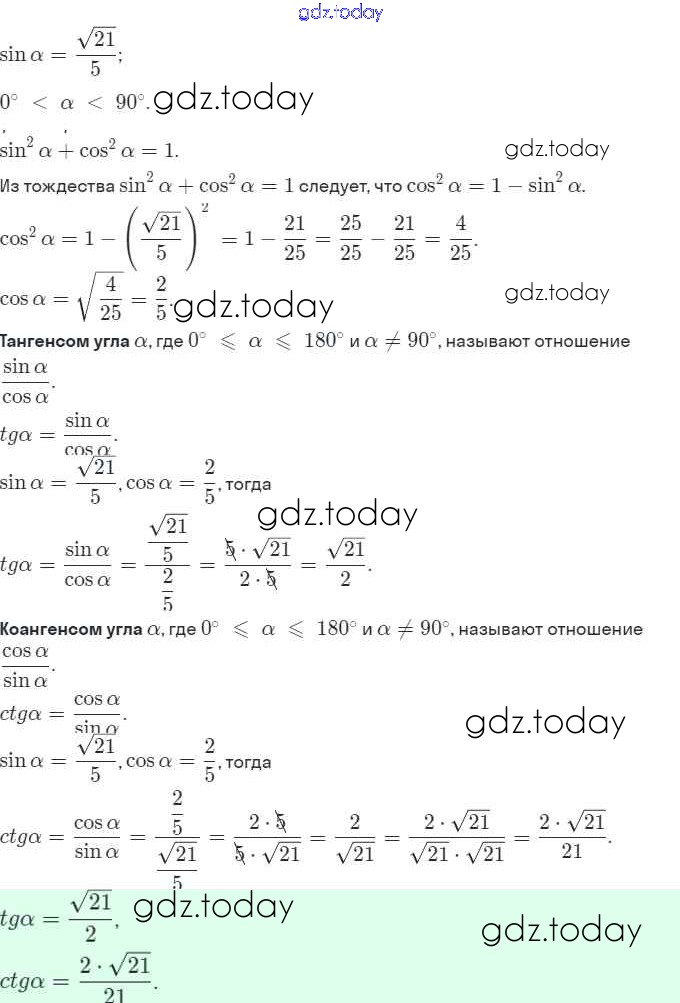 Ответы к Решение. §1. Тригонометрические функции угла от 0° до 180° 14 Рабочей тетради по Геометрии для 9 класса Мерзляк, Полонский Вентана-граф Алгоритм успеха 2021