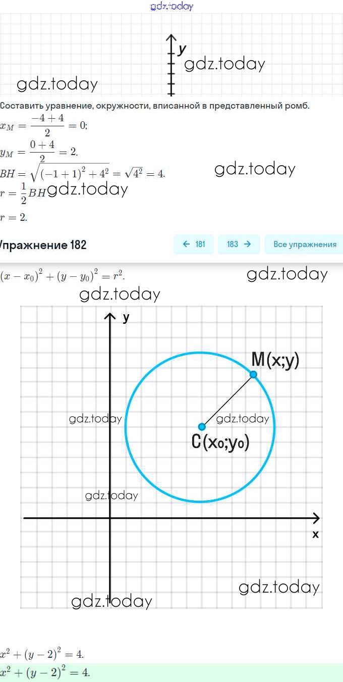Ответы к Решение. §9. Уравнение фигуры. Уравнение окружности 182 Рабочей тетради по Геометрии для 9 класса Мерзляк, Полонский Вентана-граф Алгоритм успеха 2021