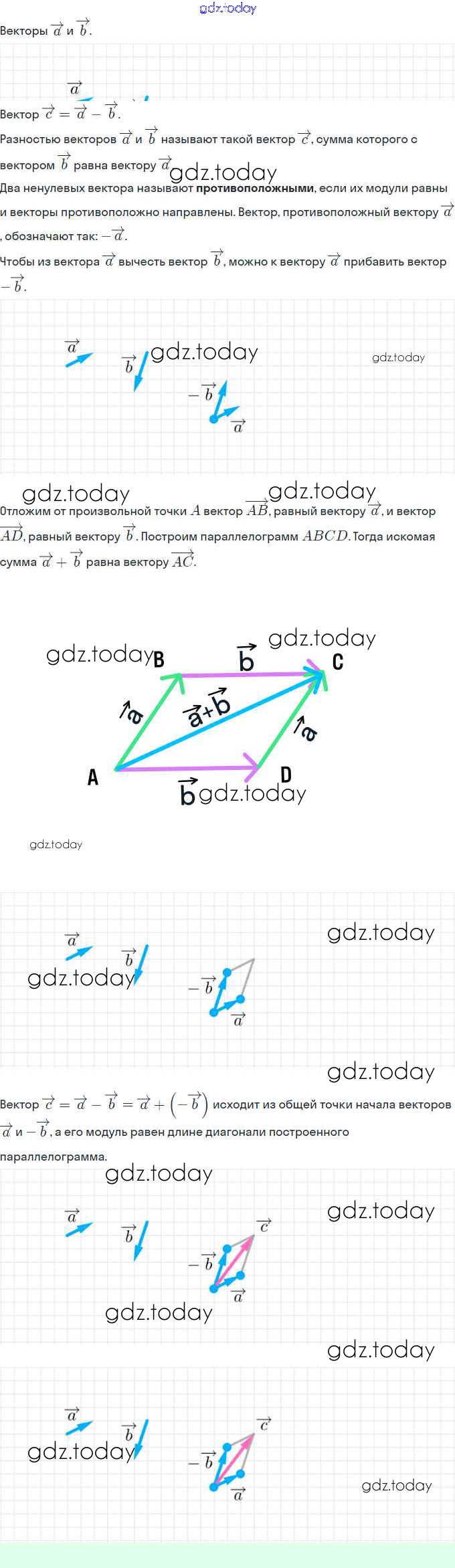 На страницах сайта gdz.today вы найдете учебный и вспомогательный материал, направленный на улучшения знаний школьной программы. ГДЗ - онлайн мир знаний Решение. §14. Сложение и вычитание векторов 258 Рабочей тетради по Геометрии для 9 класса Мерзляк, Полонский Вентана-граф Алгоритм успеха 2021