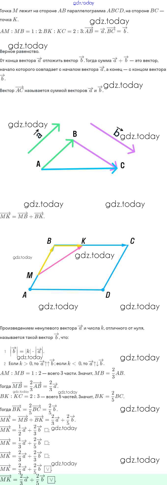 Ответы к Решение. §15. Умножение вектора на число 296 Рабочей тетради по Геометрии для 9 класса Мерзляк, Полонский Вентана-граф Алгоритм успеха 2021