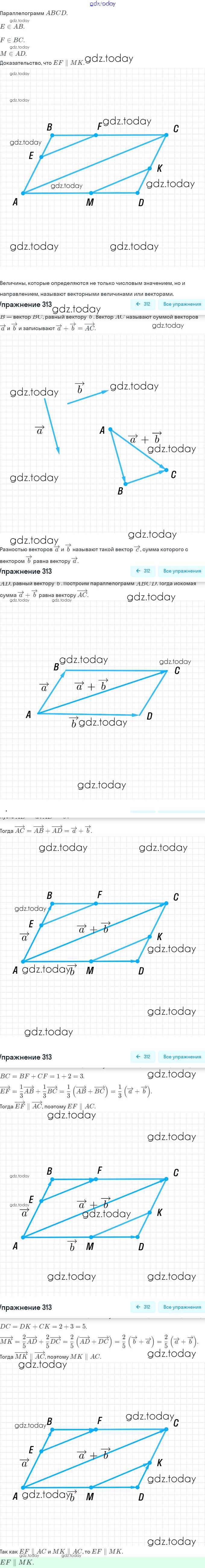 Ответы к Решение. §15. Умножение вектора на число 313 Рабочей тетради по Геометрии для 9 класса Мерзляк, Полонский Вентана-граф Алгоритм успеха 2021