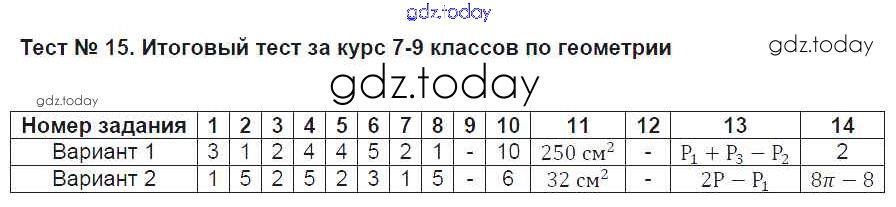 Ответы к Решение к тестам 15 Контрольно-измерительным материалам (КИМ) по Геометрии для 9 класса Рязановский, Мухин Экзамен 2016