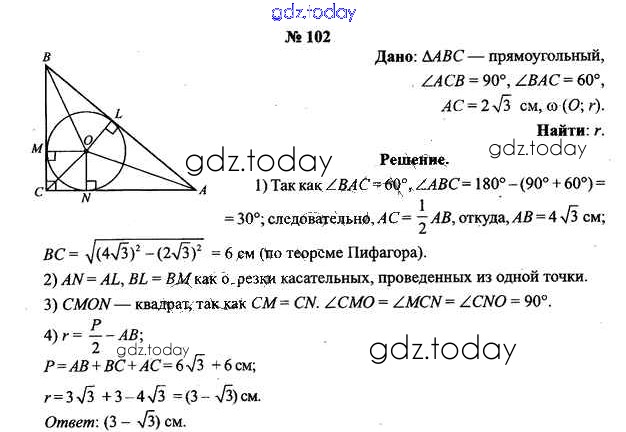 На страницах сайта gdz.today вы найдете учебный и вспомогательный материал, направленный на улучшения знаний школьной программы. ГДЗ - онлайн мир знаний Решение к задачам 102 Учебнику по Геометрии для 9 класса Шлыков Народная асвета 2012
