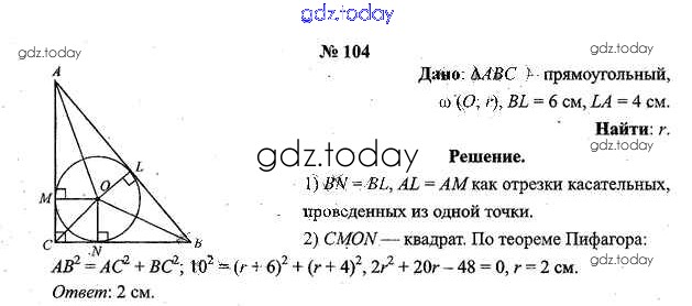 Ответы к Решение к задачам 104 Учебнику по Геометрии для 9 класса Шлыков Народная асвета 2012
