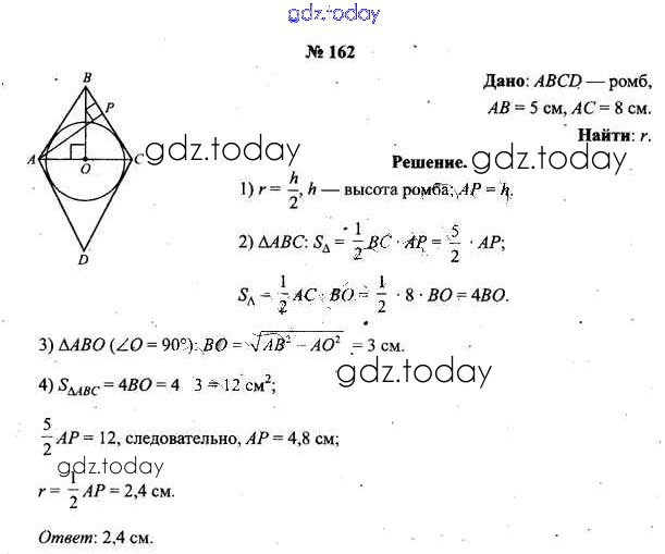 Ответы к Решение к задачам 162 Учебнику по Геометрии для 9 класса Шлыков Народная асвета 2012