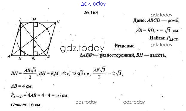 Ответы к Решение к задачам 163 Учебнику по Геометрии для 9 класса Шлыков Народная асвета 2012