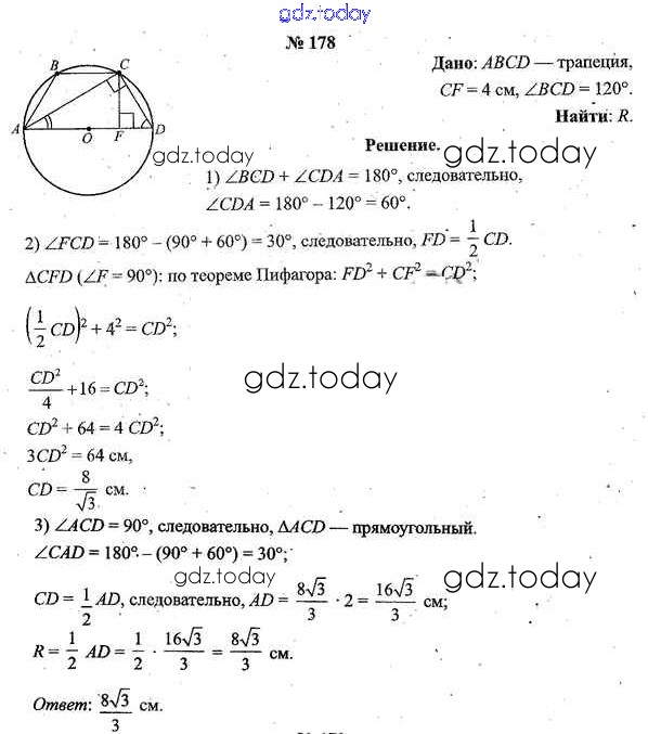 Ответы к Решение к задачам 178 Учебнику по Геометрии для 9 класса Шлыков Народная асвета 2012