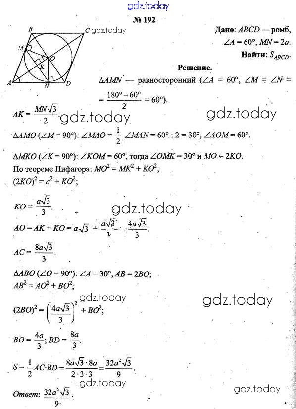 Ответы к Решение к задачам 192 Учебнику по Геометрии для 9 класса Шлыков Народная асвета 2012