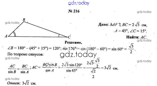 На страницах сайта gdz.today вы найдете учебный и вспомогательный материал, направленный на улучшения знаний школьной программы. ГДЗ - онлайн мир знаний Решение к задачам 216 Учебнику по Геометрии для 9 класса Шлыков Народная асвета 2012