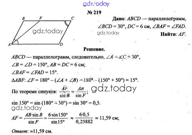 Ответы к Решение к задачам 219 Учебнику по Геометрии для 9 класса Шлыков Народная асвета 2012