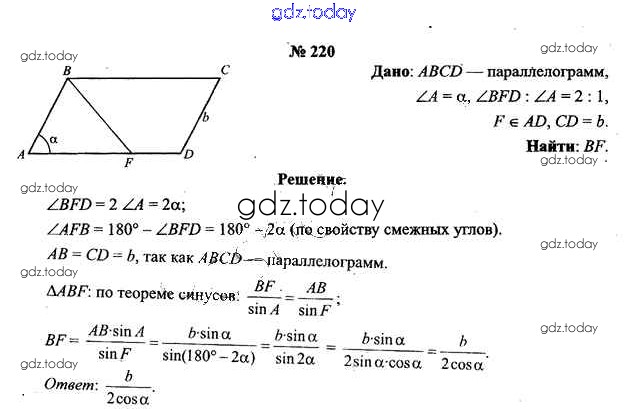 Ответы к Решение к задачам 220 Учебнику по Геометрии для 9 класса Шлыков Народная асвета 2012