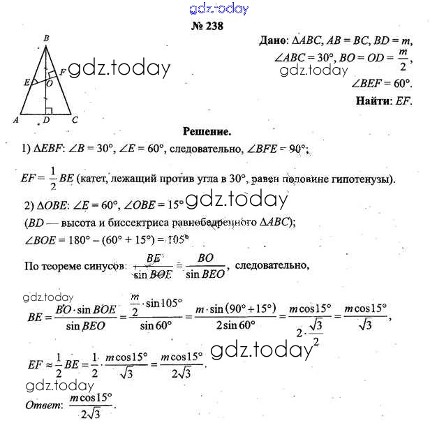 Ответы к Решение к задачам 238 Учебнику по Геометрии для 9 класса Шлыков Народная асвета 2012