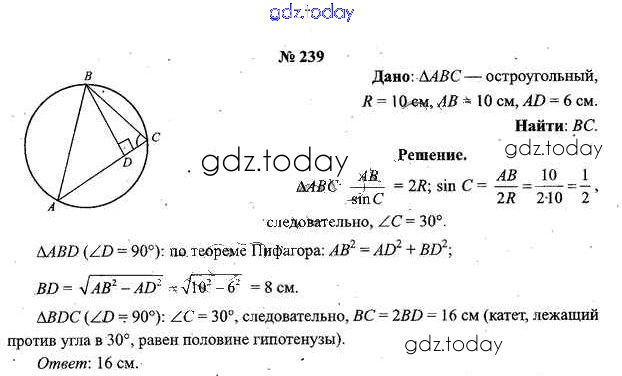 Ответы к Решение к задачам 239 Учебнику по Геометрии для 9 класса Шлыков Народная асвета 2012
