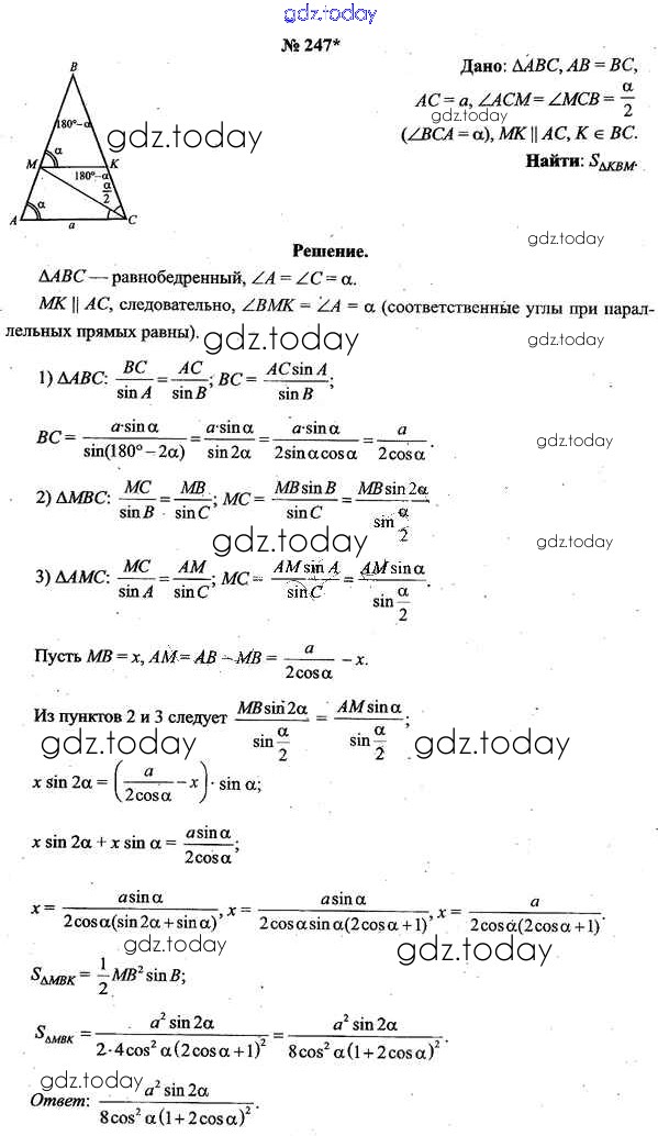 Ответы к Решение к задачам 247 Учебнику по Геометрии для 9 класса Шлыков Народная асвета 2012