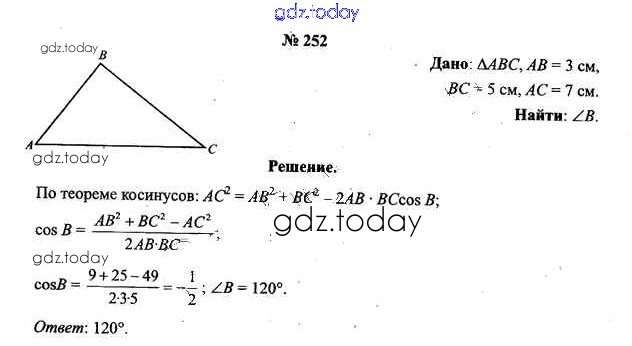Ответы к Решение к задачам 252 Учебнику по Геометрии для 9 класса Шлыков Народная асвета 2012