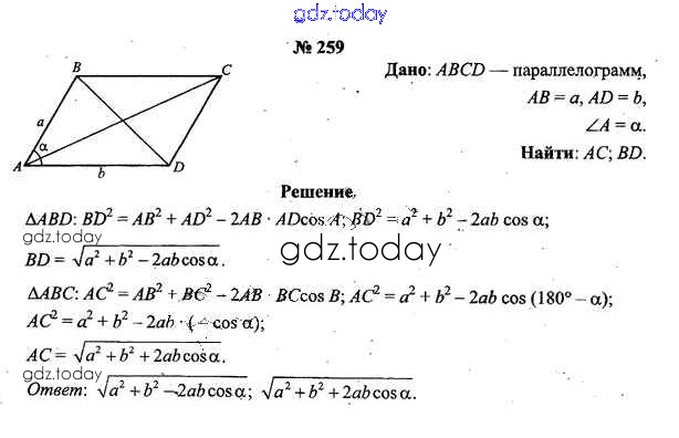 Ответы к Решение к задачам 259 Учебнику по Геометрии для 9 класса Шлыков Народная асвета 2012