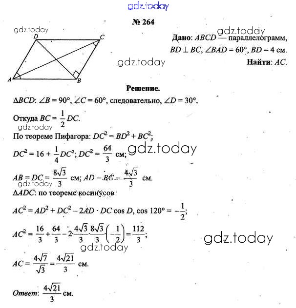 Ответы к Решение к задачам 264 Учебнику по Геометрии для 9 класса Шлыков Народная асвета 2012