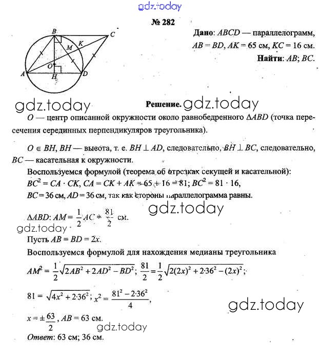 Ответы к Решение к задачам 282 Учебнику по Геометрии для 9 класса Шлыков Народная асвета 2012