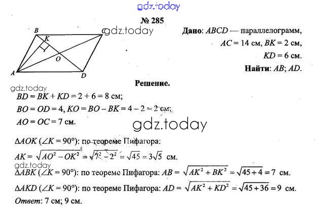 Ответы к Решение к задачам 285 Учебнику по Геометрии для 9 класса Шлыков Народная асвета 2012