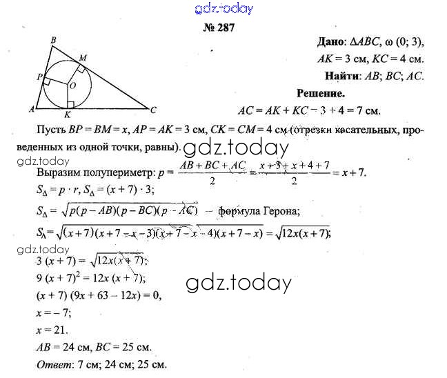 Ответы к Решение к задачам 287 Учебнику по Геометрии для 9 класса Шлыков Народная асвета 2012