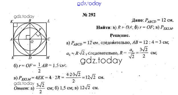Ответы к Решение к задачам 292 Учебнику по Геометрии для 9 класса Шлыков Народная асвета 2012