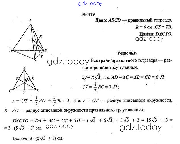 Ответы к Решение к задачам 319 Учебнику по Геометрии для 9 класса Шлыков Народная асвета 2012