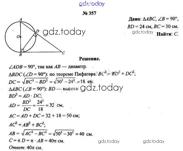 Ответы к Решение к задачам 357 Учебнику по Геометрии для 9 класса Шлыков Народная асвета 2012