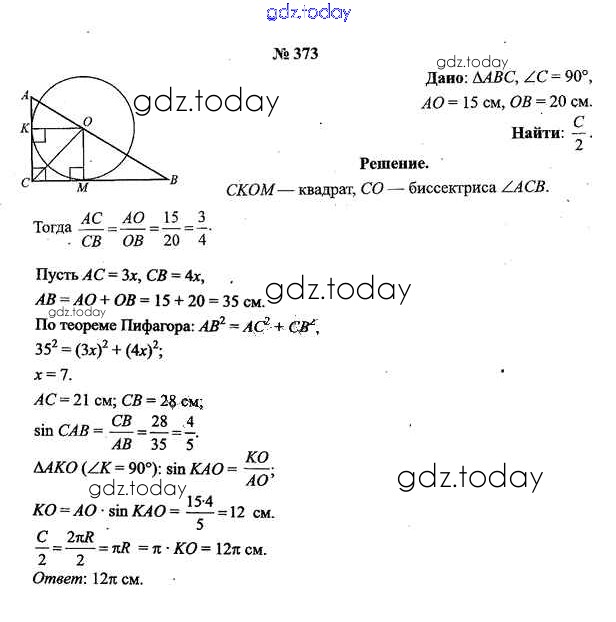 Ответы к Решение к задачам 373 Учебнику по Геометрии для 9 класса Шлыков Народная асвета 2012