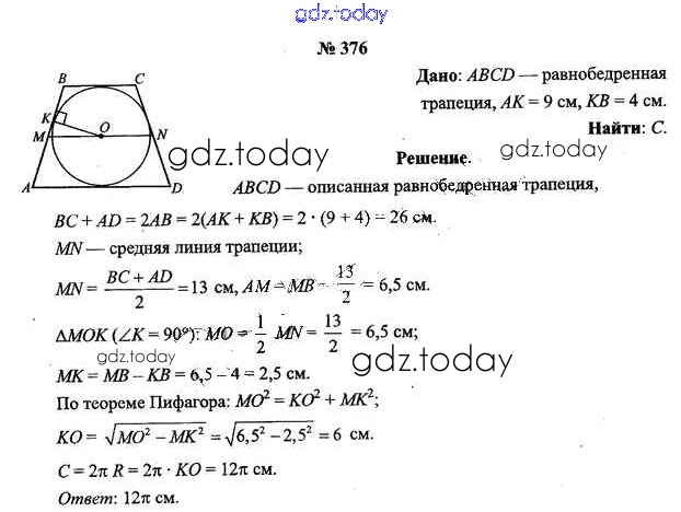 Ответы к Решение к задачам 376 Учебнику по Геометрии для 9 класса Шлыков Народная асвета 2012
