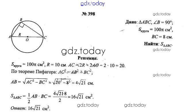 Ответы к Решение к задачам 398 Учебнику по Геометрии для 9 класса Шлыков Народная асвета 2012